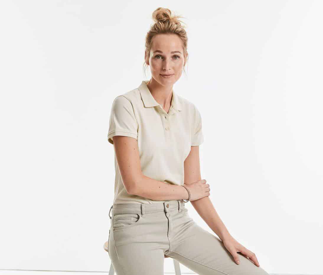 Damen Pure Organic Poloshirt aus Bio-Baumwolle in Naturfarbe