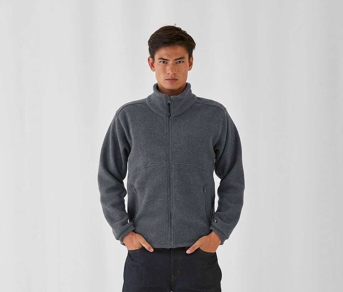 Icewalker+ Outdoor Full Zip Fleece Herrenjacke in Anthrazit mit hohem Kragen, getragen von Model vor neutralem Hintergrund
