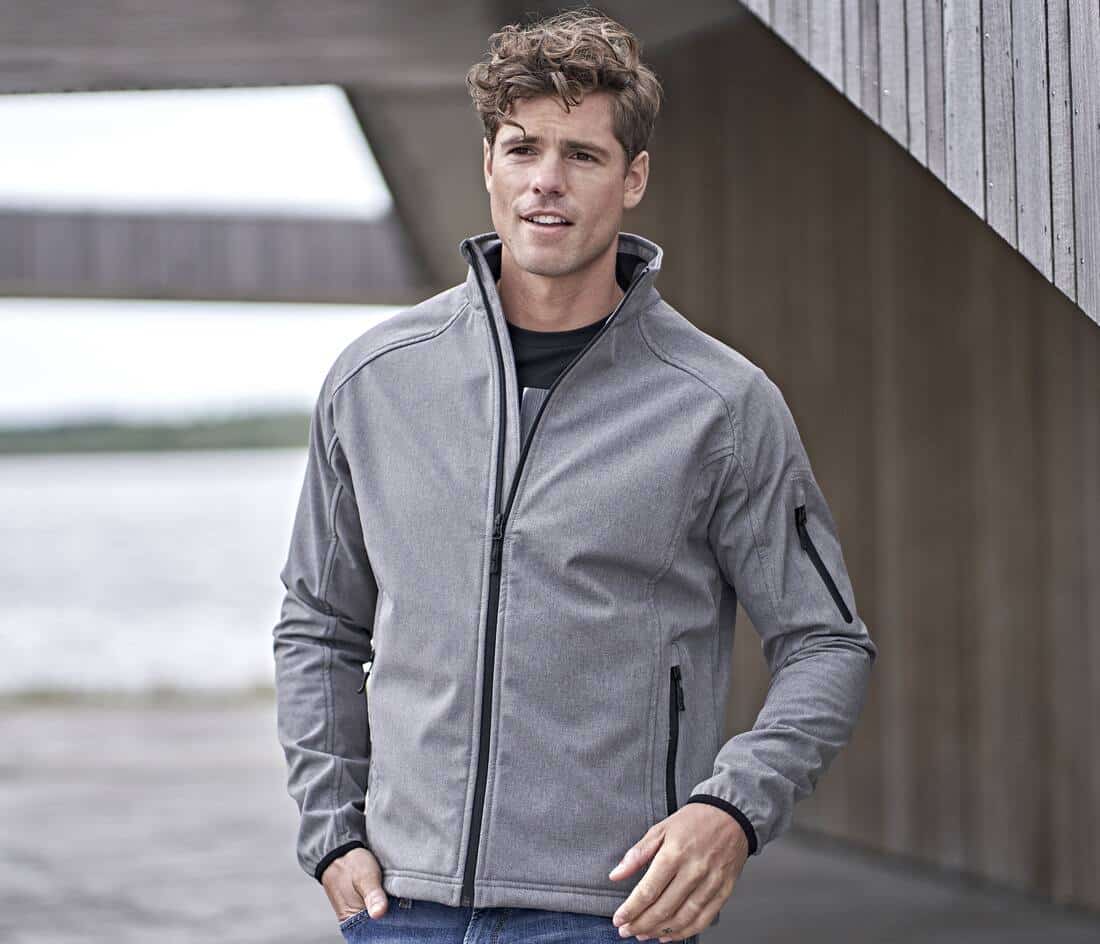 Leichter Herren-Softshell mit Reißverschluss, Stehkragen und sportlichem Design – ideal für Performance und Alltag.