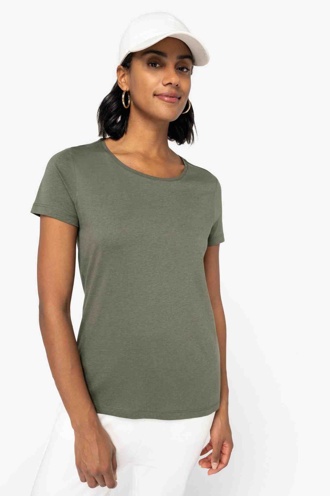 Damen T-Shirt aus Modal in Olivgrün mit Rundhalsausschnitt – nachhaltig und weich